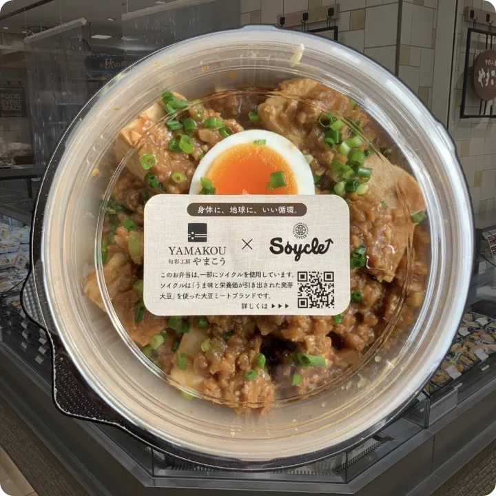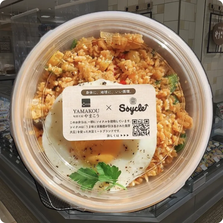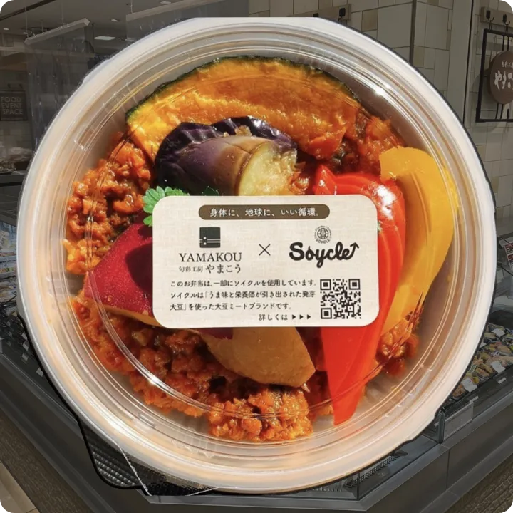 コラボ背景博多阪急・大丸など、デパ地下でも人気の、福岡の老舗弁当屋「ヤマコウ」さん。大豆ミートを「おいしいお弁当として、多くの方に食べて欲しい」という想いから生まれたコラボ商品になります。