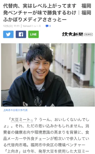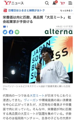 【受賞】JAPAN SOCIAL BUSINESS SUMMIT2021「最優秀賞・オーディエンス賞」、Startup Conference CALLING Vol.4「凸版印刷株式会社賞・RKB毎日放送株式会社賞」、Why!? Direct.2023「ESG賞」、Big Idea Food Competition (BIFC) Japan「優勝」、第25回 福岡デザインアワード「銀賞」、福岡市ソーシャルスタートアップ認定 他
